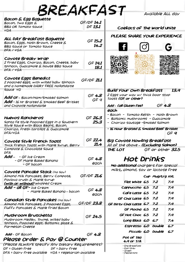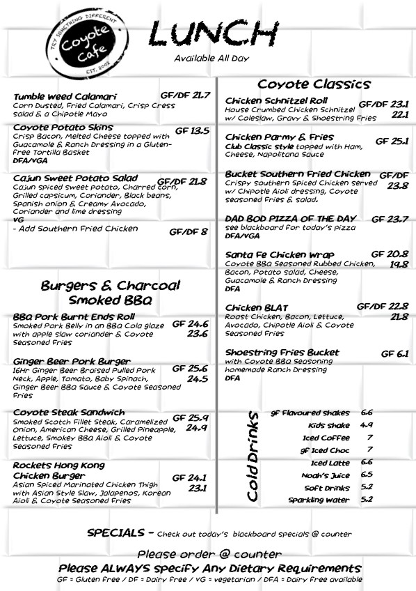Coyote Cafe Gluten free Cafe Menu
