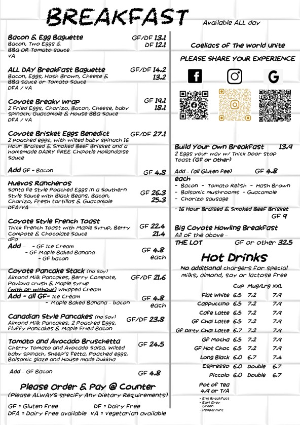 Coyote Cafe Gluten free Cafe Menu